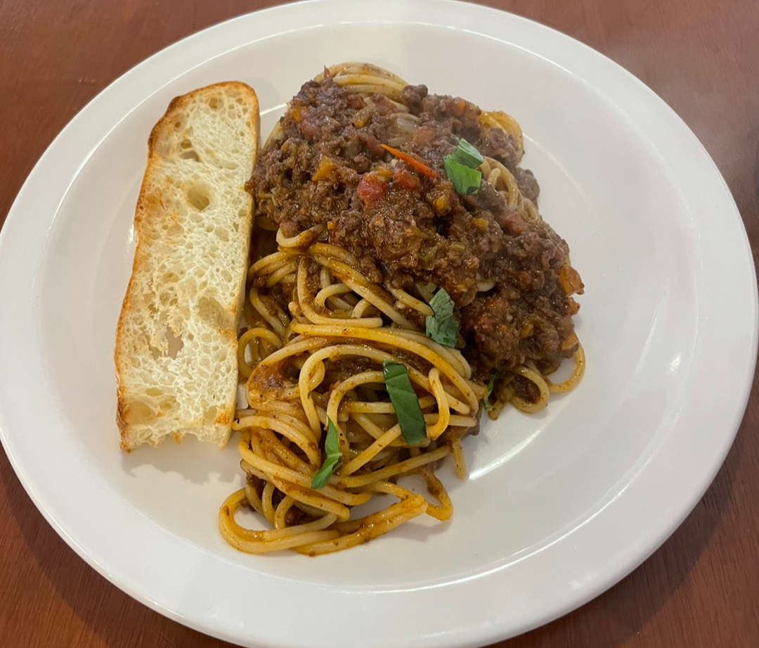라구 소스를 빵에 올려 먹으니 정말 맛있습니다.